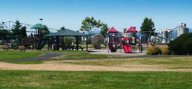 Rainier Riverfront Park was built on the dredge spoils from the eruption of Mt. St. Helens; in the early 1980’s. It is located just one block off Highway 30 (otherwise known as ‘B’ Street through town) along the Columbia River.