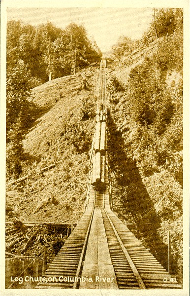 - Rainier, Oregon Log Chute “The Incline” – ca 1915 Penny Postard Image Courtesy of Lyn Topinka