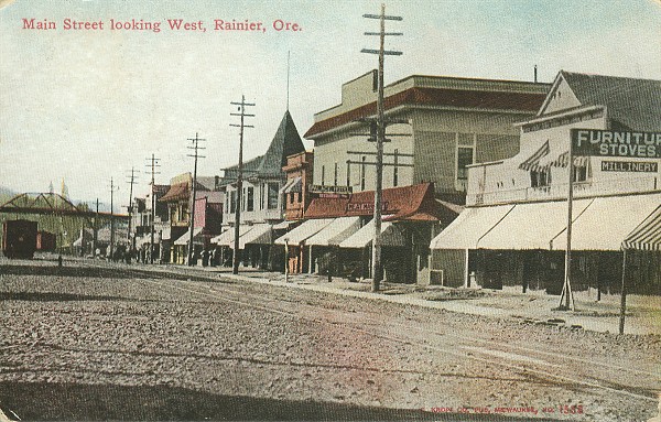 - Rainier, Oregon Main Street – 1911 Penny Postard Image Courtesy of Lyn Topinka